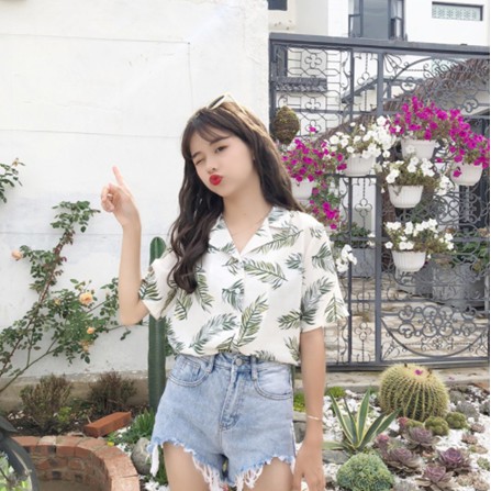 Qoo10 Korean Style Hawaiian Blouse Female Short Sleeve Leaf Printing Loose O Women S Clothing