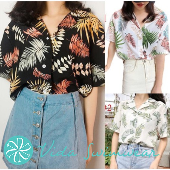 Printed Polo Shirt Korean Top Oversize Floral Shirt Women Hawaiian Shirt Blouse Beach Shirt Shopee Philippines